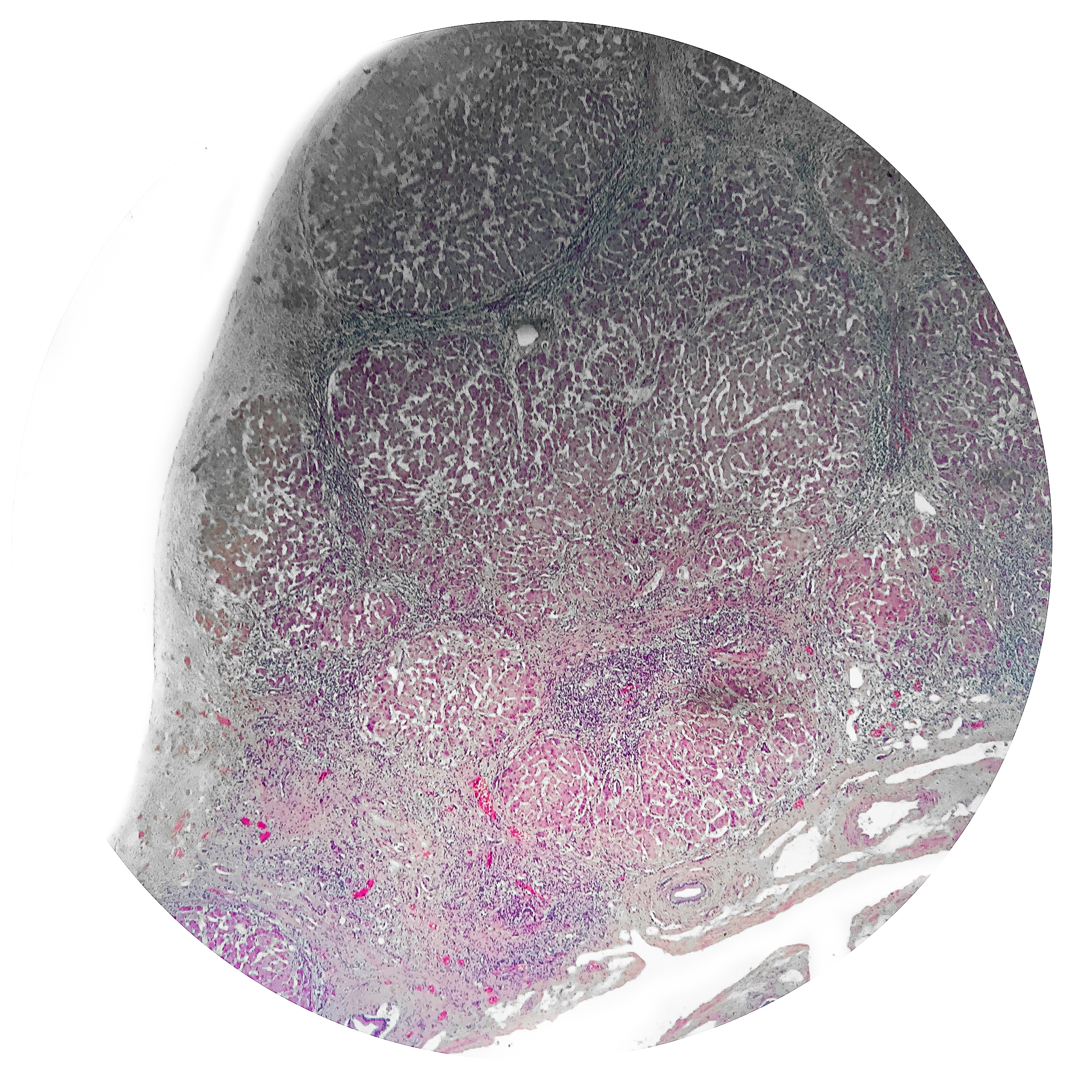 Infiltration by mononuclear cells (macrophages, lymphocytes, and plasma cells)