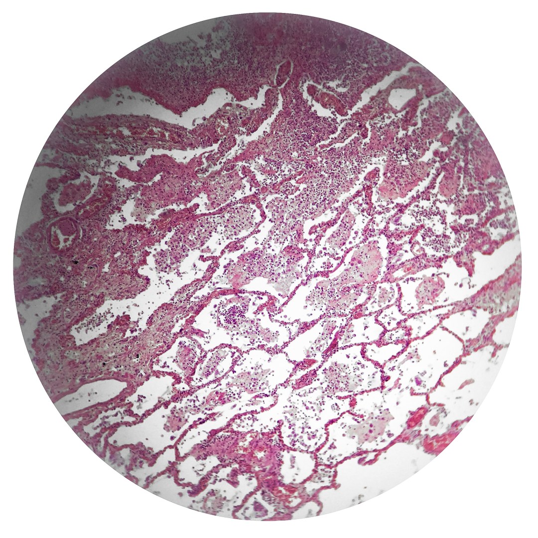 Epithelium | columnar epithelium destroyed and barely identifiable amongst cellular exudate
